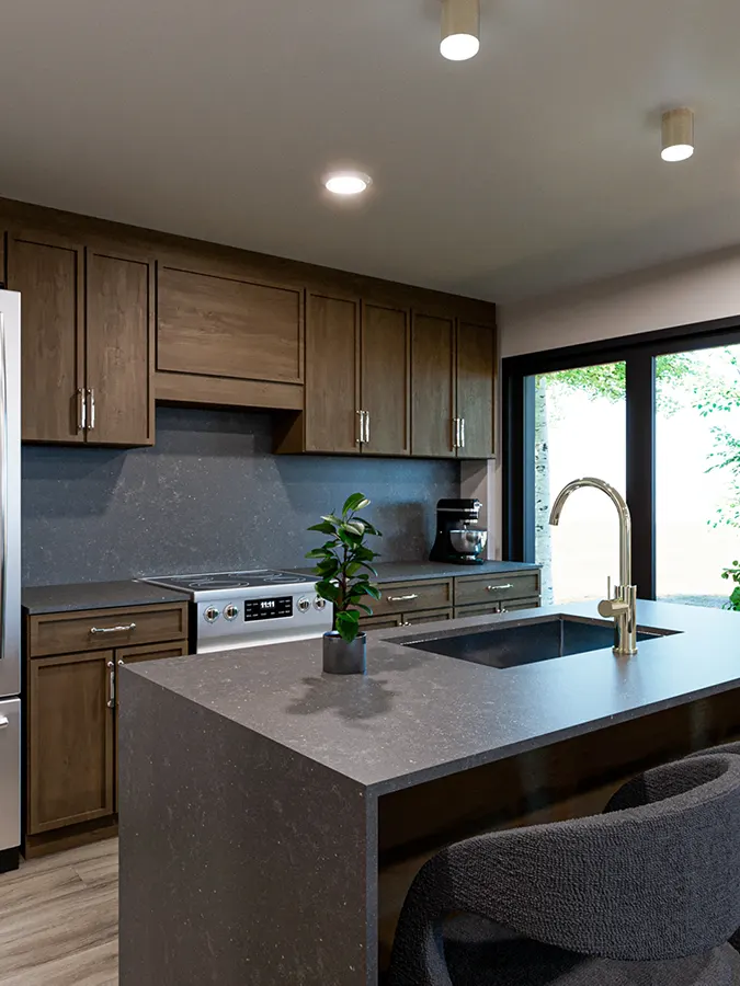 Inside, each residence features open-concept living, high-end finishes, and spacious walk-in closets in select homes.